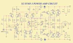 em thấy sơ đồ mạch SYM5.3 nhìn cungc được không biết sử dụng để đánh karaoke thế nào. Em thử dùng Sprint Layout vẽ lại tích hợp thêm mạch bảo vệ loa và sử dụng 4 cặp transistor xem có hay không. Loa cùi nên cứ ngon bổ rẻ là được rồi ạ