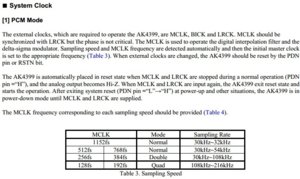 Các cụ đi chơi ghé qua đây cho em hỏi tý: Em vừa làm xong em Dac 32 bits chạy chip AKM 4399. Quá nhiều điều bất ngờ từ âm thanh của em này mang lại. Không hổ danh là flag ship của háng :lol: Tuy nhiên mạch em làm là kit của DIYinHK làm từ schema sample của hãng. Không clock ngoài. Tuy đã hay lắm rồi nhưng em tham lại muốn hayn hơn nên có 2 vấn đề cần tham khảo. 1. Về Digital: Tài liệu nó nói thế này thì dùng con clock có tần số thế nào? 2. Về phần analog: Em xin tham khảo về kinh nghiệm sử dụng linh kiện Con tụ 100uF đầu vào opam sẽ ảnh hưởng như thế nào đến chất âm khi: - Tăng trị số từ 100uF lên thành 220uF - Thay tụ hóa có phân cực bằng tụ hóa Bipolar - Ngoài ra trong đống linh kiệh loanh quanh con opam thì chú nào tác động nhiều nhất đến "chất âm"?