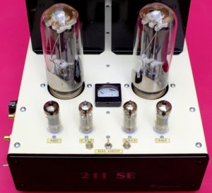 Này thì chém vãi Tợm này (sợ nói đúng thèng King nó chém bỏ mịa) Ló lói thía lày :lol: : THE 211 SE IS ONE OF THE BEST Single Ended amplifier, MAYBE THE BEST! :lol: 2x30 watts power! Special 550 watts ! HQ. C core output transformers Vintage soviet Vitamin Q PIO caps siemens E83F + 6463 driver Tubes 4x5U4G rectifier tube 750 watts!!! power transformer 2x TWIN CHOKE TRANSFORMERS for the noise reduction, NO HUM! noiseless! Output Impedance: 4-16 OHM Frequency response: 12Hz-50.000Hz -1db TDH:0.08%mV 2x input imp: 500mV/100Kohm Volem meter for OutPut Power:2x30Watts the Power transf. 750watts Input terminal:RCA +XLR Output (speaker) banana weight:cca30kg