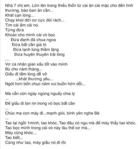 Em lụm được trên mạng bài thơ dzui dzui....gửi các bác đọc cho vui nhân ngày 20-11 Hai vợ chồng nhà kia Sinh được một cậu bé Dễ thương và mạnh khỏe Nay đã 4 tuổi rồi... Rồi một hôm đang ngồi Cô vợ liền tâm sự Anh ạ...! Con vẫn...bú... Dù em hết...sữa rồi...! Nó vẫn cứ nhằn thôi Nhiều hôm...em đau quá...! Người chồng cười ha hả... Việc đó dễ thôi mà.. Bôi chút dung dịch là Con ngậm cay...bỏ bú...! Mặt trời vừa mới nhú Người chồng liền mang sang Lọ dung dịch màu vàng... Bôi đôi gò bồng đảo... Hôn vợ yêu một cái Người chồng vội đi làm Anh đến thẳng cơ quan.. Làm lu bu công việc... Một hồi sau mới biết Mình lấy nhầm lọ rồi... Lọ thuốc..cực độc...ôi...! Con ơi...! Ba có tội...! Ba đã giết con rồi...! Hốt hoảng lẫn rối bời... Người chồng liền tức tốc... Phóng vội xe về nhà...! Nhìn thấy từ...xa xa... Nhà đông người qua lại... Người thì hô cấp cứu.. Kẻ bảo...nó chết rồi...! Ôi..! Ba giết con rồi...! Người chồng khuỵu trước cổng..! Như phép tiên...rồi bỗng... Đứa bé từ trong nhà Rẽ đám đông chạy ra... Ôm chầm lấy người cha... Hổn hển...mách rằng là... Chú HÀNG XÓM ..gần nhà... Chết ...trong kia...ba ạ...! Sưu tập