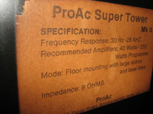 Chào bác ! Model này chỉ có một đời duy nhất, sản xuất năm 1992 ( tháo củ loa mid, bass nó đóng năm sản xuất bên trong ) Cái chữ lộn ngược là tại cái máy ảnh simachao Còn không phải hình chữ nhật là vì nó cao quá, chụp cận cảnh nó bị biến dạng thành đường cong cong mà giới nhiếp ảnh gọi là ...... Giá bìa sách năm 1992 là 2700$ Cái loa trép của bác ở trên hình vuông em thấy lạ à nghen ! Thân ![/quote]Loa chép vuông thì giống cái này http://cgi.ebay.co.uk/ProAc-Super-Tower ... 06161a4598 còn chép tròn thì giống cái này http://www.wired4sound.net.au/speakers/proac/proac.htm Bác nào có thêm thông tin giúp em với.Em lăn tăn quá nhỡ vớ phải đồ đểu thì chết