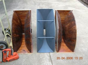 Bác làm kèn đẹp quá. Em đọc ở đâu có nghe Bác hỏi về vụ cắt tần số của kèn thì phải , theo Em biết thì kèn càng dài miệng càng rộng thì tần số cắt càng thấp đấy ạ, vụ này Bác cứ áp dụng công thức là biết ngay đó mà. Kể cả thùng kèn dành cho toàn dải foxtex thì thùng đường đi càng dài , càng cong, miệng càng rộng thì tiếng Bass xuống càng sâu thế ạ, Em thấy có mẫu kèn Walnut này đẹp lắm Bác thử ngâm cứu xem làm được không nha Bác theloitran2001, nếu làm được hú Em với.