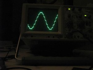 Hôm nay có bác hỏi em sao sóng sin từ DAC này phát ra trông có nhiều bậc thang. Cái này liên quan đến câu hỏi của bác coi ở trang trước. DAC này la loại nonoversampling không có lọc số nên tín hiệu trông nó như vậy. Càng lên tần số cao bậc thang càng lớn và rõ. Em gửi vài cái hình để các bác xem cho rõ.