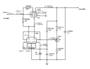 Bác QuyetDIY nhờ tính mạch Regu Tube chạy bóng lái 12AU7. Mạch chạy Ok nhưng không phẳng được như khi dùng bóng 12AX7 do Mu của 12au7 thấp hơn nhiều so với 12AX7. Bóng công suất EL84 có thể thay bằng loại bác có như 6p3c. Bổ sung: - Tụ hồi tiếp C1 để mạch chạy tốt hơn, DC phẳng hơn. - Led blue D2 chăn một phần nhiễu nội sinh của Zener D1